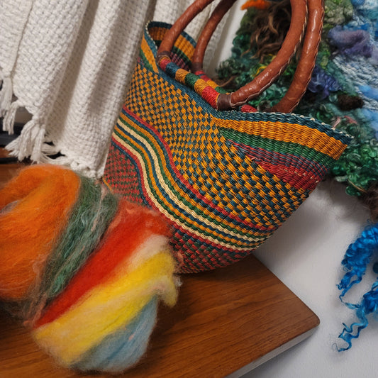 Check out our fun Bolga baskets! Handwoven in the Bolgatanga region of Ghana, these colorful baskets are great project keepers!