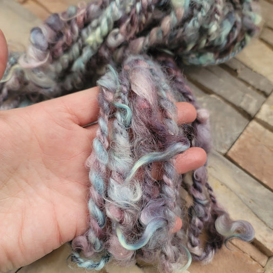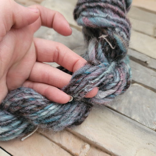 Handspun yarns of all weights and sizes, spun on one of three wheels I own. Ranging from thin fingering weights to chunky rug yarns, these offerings are typically one and done skeins. Sometimes batts and rovings I have purchased, sometimes ones I have created. If you have a request for a specific weight or color story, send me a message and we can chat!