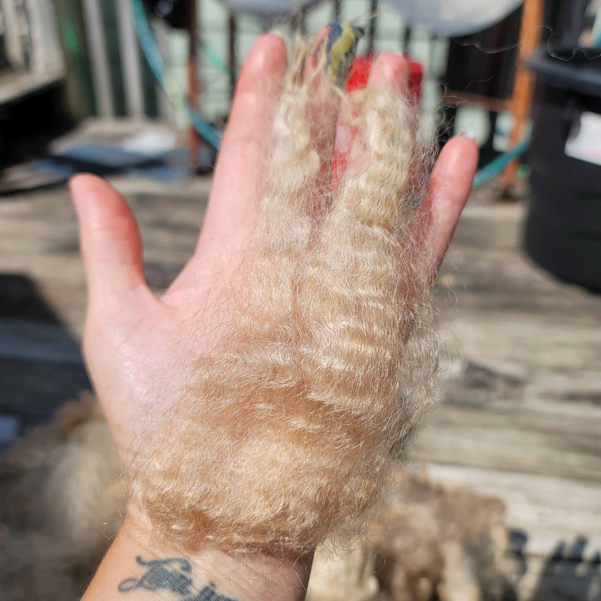 2.7# of gorgeous raw Lincoln Longwool, 6-8" staples, strong, super shiny, nice handle.
