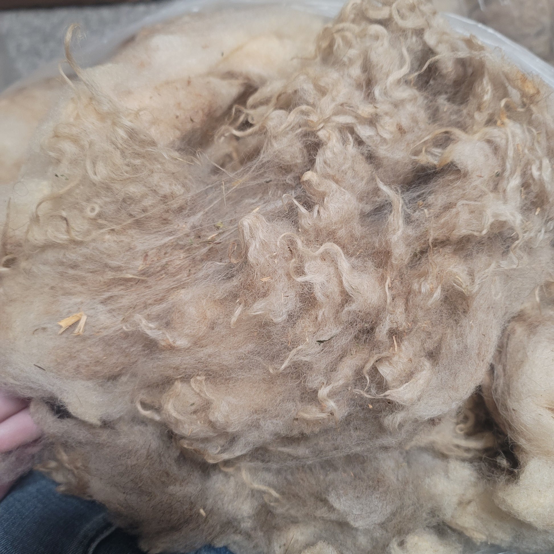 1.2# of gorgeous raw Shetland neck wool. Traditional Shetland fleece type. 4-5" staple. Soft handle. Some VM.